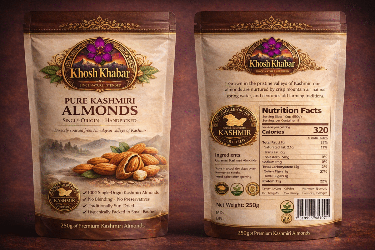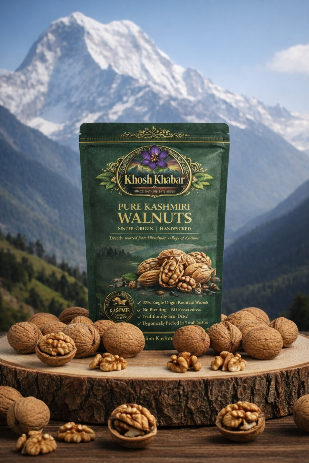 Every almond, walnut, strand of saffron, and drop of shilajit is carefully sourced, tested, and packed with integrity. Inspired by Kashmiri heritage and guided by trust, we believe true quality needs no shortcuts—only honesty, patience, and respect for nature.