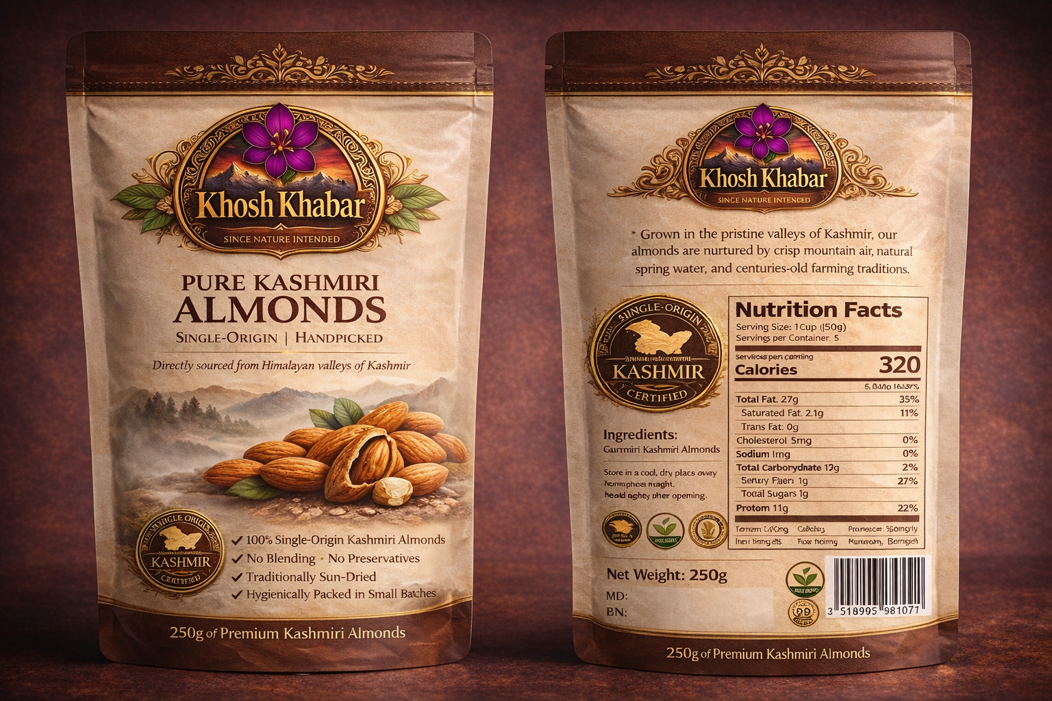 Khosh Khabar Premium Almonds are carefully sourced from high-quality farms to deliver exceptional taste, crunch, and nutritional value. Naturally rich in healthy fats, protein, fiber, and antioxidants, these almonds support heart health, brain function, and sustained daily energy. Their superior quality makes them ideal for everyday consumption, festive gifting, and use in desserts or traditional recipes. Each batch is hygienically packed to preserve freshness, purity, and natural flavor.